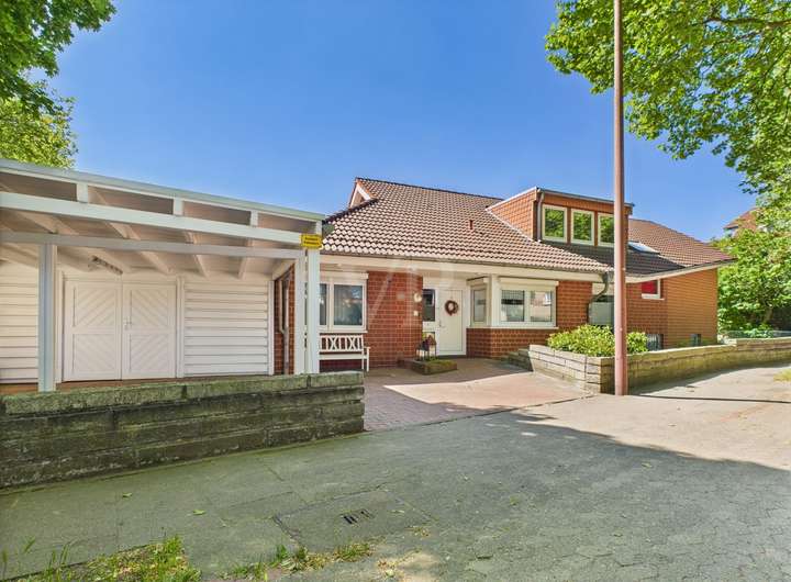 Zwei Garagen befinden sich unmittelbar neben dem Grundstück und sind direkt vom Garten aus erreichbar. Zudem befindet sich auf dem Grundstück ein Carport mit Gerätehaus.