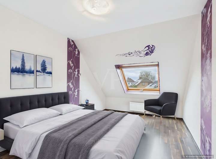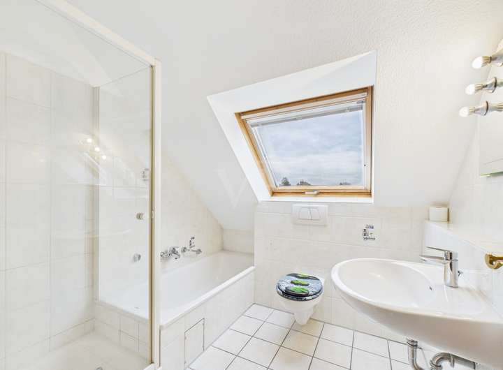 Im Dachgeschoss sind neben einem modernen Badezimmer, ausgestattet mit Badewanne und Dusche, zwei Schlafzimmer und ein weiterer Raum untergebracht