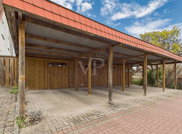 Ein besonderes Plus ist der überdachte Stellplatz, der auch über einen angrenzenden Geräteraum verfügt, der zusätzlichen Stauraum für Ihre Utensilien bereitstellt.