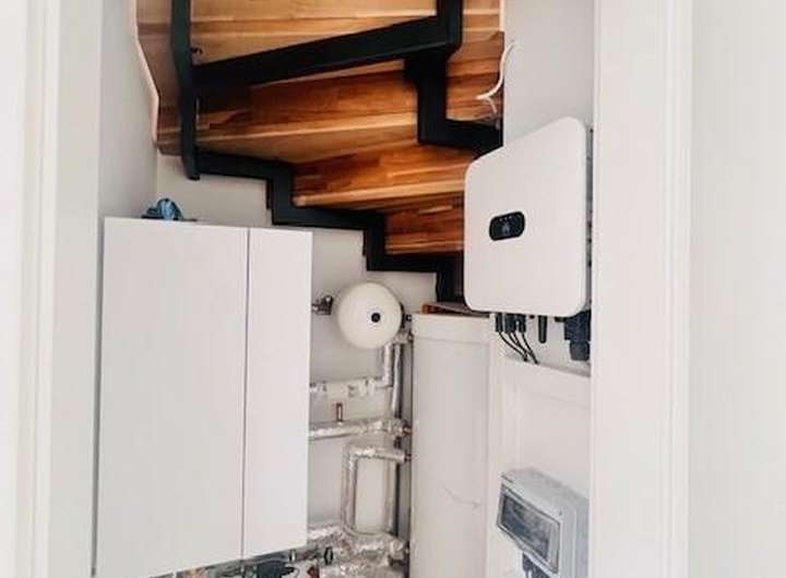Das Gebäude wird durch eine Luft-Wärmepumpe beheizt und verfügt über eine Photovoltaikanlage auf dem Dach. Eine Grünbeck-Enthärtungsanlage sorgt für weiches Wasser und schont Hausgeräte.