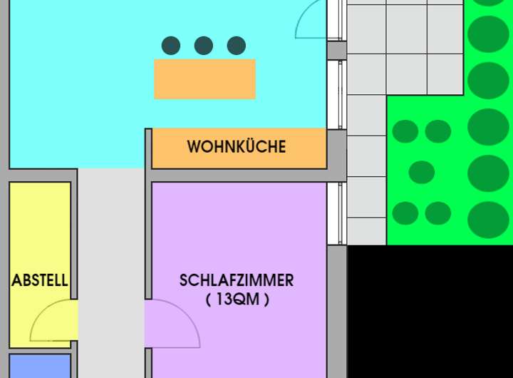 Die Wohnküche bietet Ihnen vielfältige Möglichkeiten diesen Bereich mit dem Wohnbereich attraktiv zu verbinden und zusammen mit dem Privatgarten zu einem sehr lebenswerten Lebensmittelpunkt zu machen. Neben einer effizienten einzeiligen Küche ist auch eine Küche in L-Form oder sogar mit einer kleinen Kücheninsel denkbar. Ganz bewusst wird Ihnen hier keine Küche vorgegeben, sondern planen Sie Ihre Wunschküche einfach individuell.