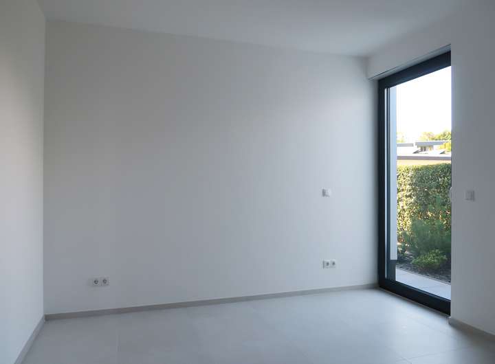 Das Schlafzimmer bietet ausreichend Platz für ein großes Bett und besitzt ein Fensterelement zum Lüften. Auch ein Blick aus dem Bett auf Ihren eigenen schönen Privatgarten ist hier möglich.