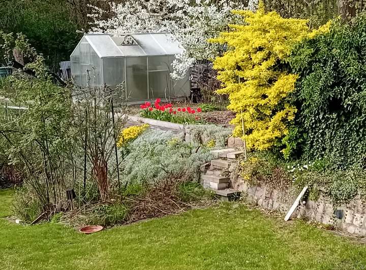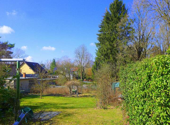 Das Grundstück besteht aus zwei Flurstücken und hat optimale Maße für einen Neubau in erster Reihe mit einem dahinterliegenden großen Garten, der einen schönen Blick in das unbebaubare Landschaftsschutzgebiet mit dem Kindelfließ ermöglicht. Das schmale rechts liegende Flurstück und der vordere Teil des großen Flurstücks liegen auf Straßenniveau, der hintere Teil liegt etwas niedriger. Auf dem Grundstück befinden sich ein älterer wohnlicher teilunterkellerter Bungalow mit schöner Terrasse, ein Nebengebäude als Wirtschaftshaus und ein Gewächshaus. So kann man diese Immobilie als einen Ort der Erholung nutzen oder eine Zeit der Ruhe genießen, bevor es in die Bauphase geht, um sich ein wunderschönes neues Heim zu schaffen.