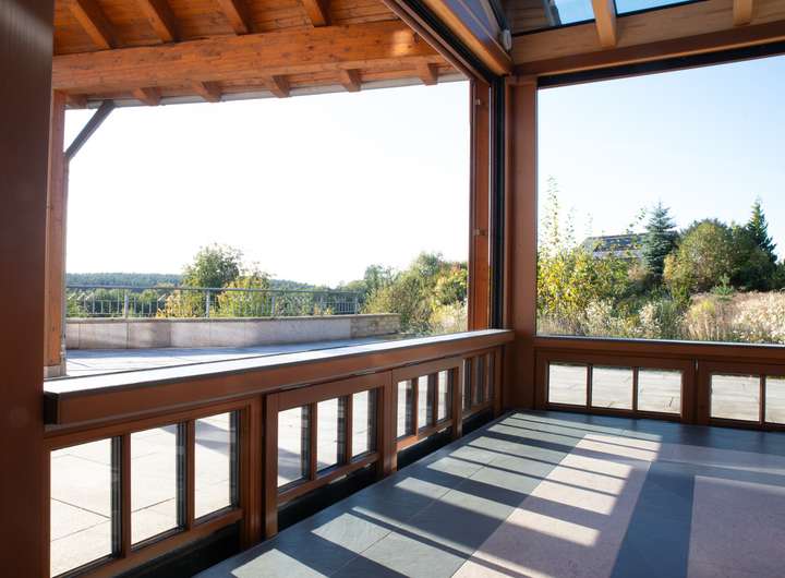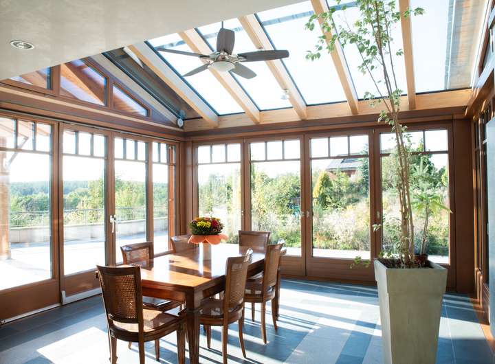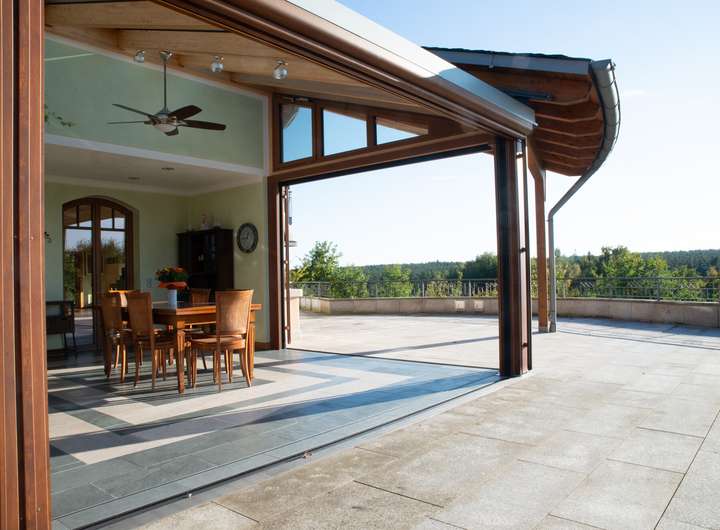 -Wintergarten mit vollständig verschiebbaren Glaswänden
