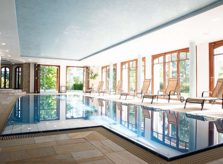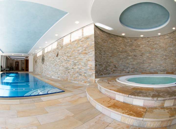 -Großzügiger Wellnessbereich mit modernem Indoor-Pool, Whirlpool und Infrarotkabine