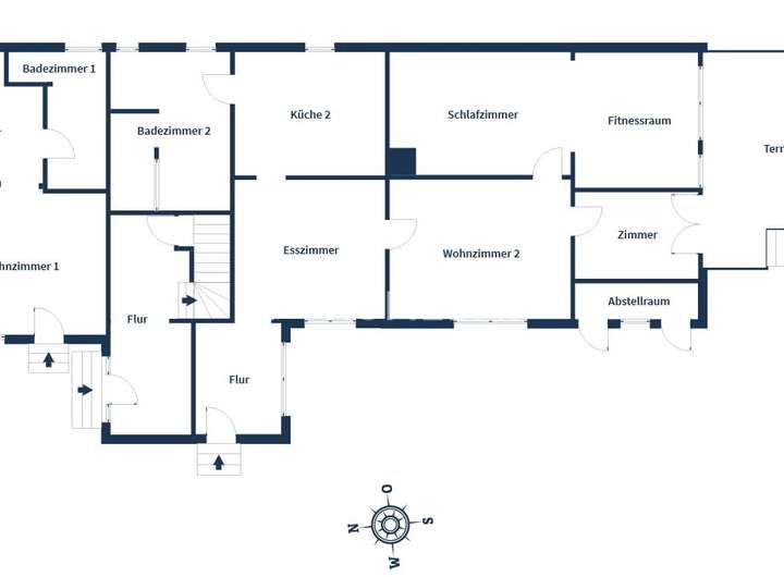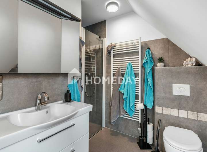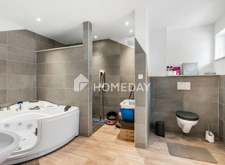 Das Erdgeschoss beherbergt zwei separate Wohneinheiten: eine gemütliche Einliegerwohnung mit einem Zimmer, Küche und Badezimmer sowie eine großzügige Wohnung mit vier Zimmern, Tageslichtbad, Küche, Abstellraum und direktem Zugang zur Terrasse. Im Obergeschoss erstreckt sich eine weitere Einheit mit fünf gut geschnittenen Zimmern, einer Küche sowie einem hellen Tageslichtbad.