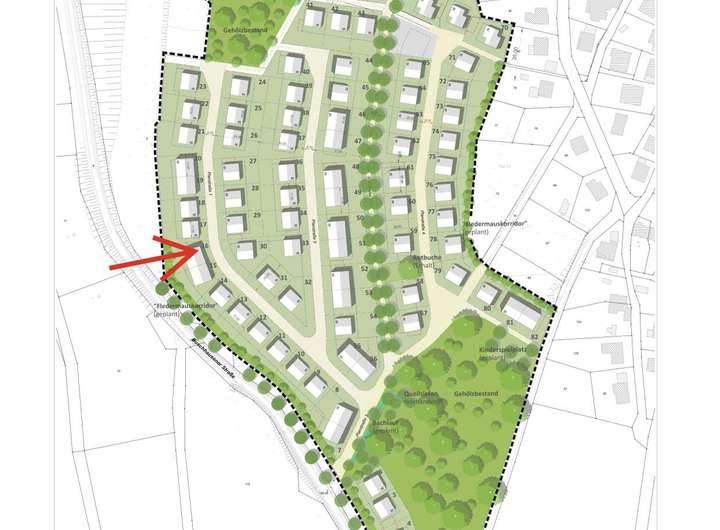Das hier zum Verkauf angebotene Grundstück mit der Parzellennummer 16 umfasst 556 m² und liegt im westlichen Bereich des Neubaugebietes.