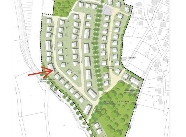 Das hier zum Verkauf angebotene Grundstück mit der Parzellennummer 15 umfasst 603 m² und liegt im westlichen Bereich des Neubaugebietes.