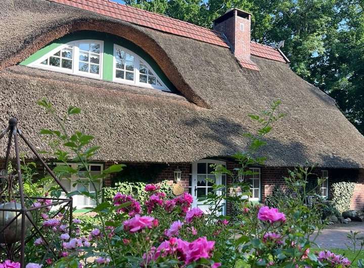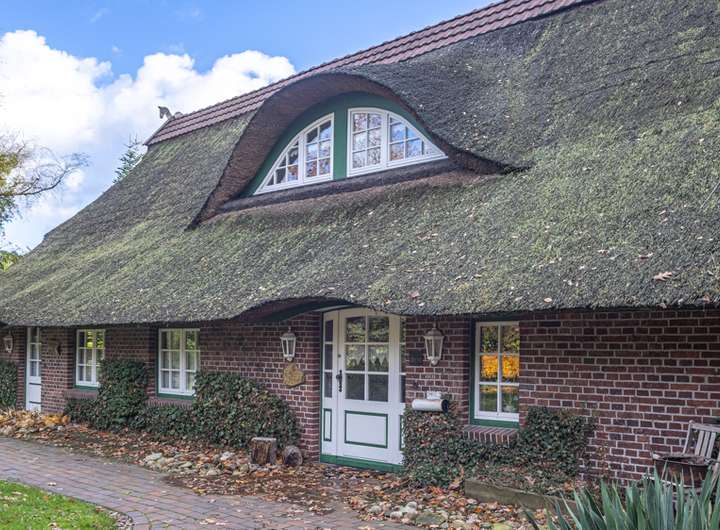 Dieses charmante Reetdachanwesen wurde ursprünglich im Jahr 1824 errichtet und im Jahre 1989 vollständig kernsaniert. In den darauffolgenden Jahren wurden weitere Modernisierungsmaßnahmen durchgeführt, sodass sich die Immobilie heute in einem sehr gepflegten Zustand präsentiert. Das Haus verfügt über acht Zimmer, verteilt auf das Erdgeschoss sowie das Obergeschoss. Darüber hinaus ist im Obergeschoss eine Infrarotsauna integriert. Der Außenbereich ist ideal für Pferdehalter geeignet: Die angrenzende Pferdeweide bietet einen großen Platz für Erholung und Bewegung. Der Pferdestall, welcher sich auf dem Grundstück befindet, bietet Platz für bis zu vier Pferde. In der Scheune befindet sich ein Futtersilo, in dem das Futter für die Pferde gelagert werden kann. All das bietet hervorragende Voraussetzungen für die Pferdehaltung.