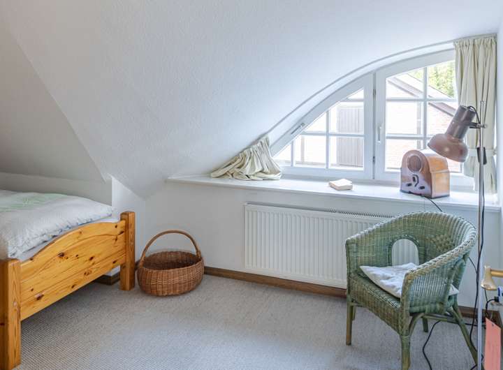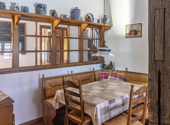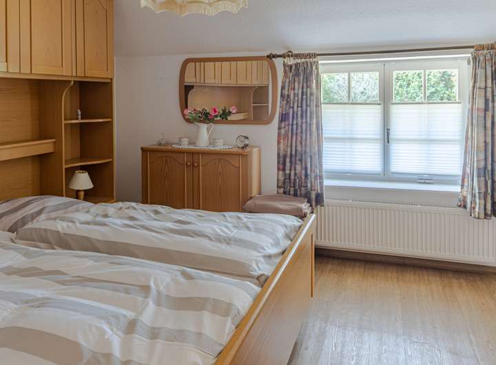 - Dachkonstruktion als Krüppelwalmdach mit Reetdeckung; je eine Seite erneuert (Bj. 2013 und 2016); Tonziegelfirst (Dachziegel rot); Fledermausgaube