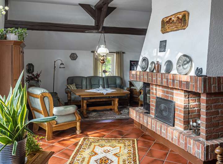 - Böden in Wohn-, Essbereich, Flur, Küche, Büro, HWR und Heizungsraum gefliest (rot-braun geflammt), Stube, Elternschlafzimmer ausgestattet mit verschiedenen Böden u.a. Teppichboden