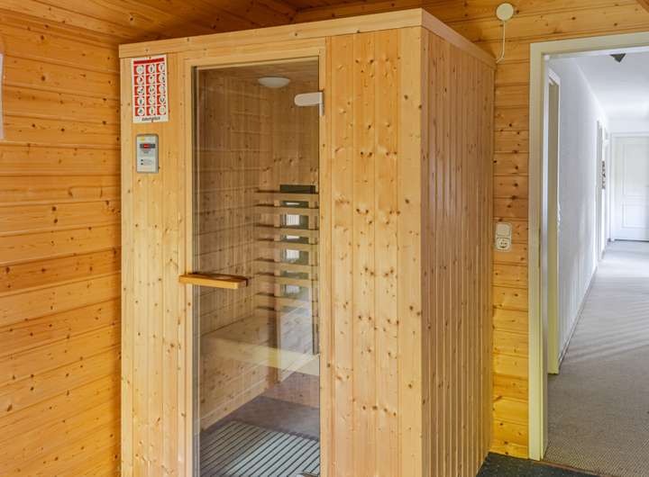 - Bodenraum II ausgestattet mit Teppichboden (dunkelblau), kompletter Raum verkleidet mit Holz; Infrarotsauna (Infralux), Bodenraum I nicht ausgebaut