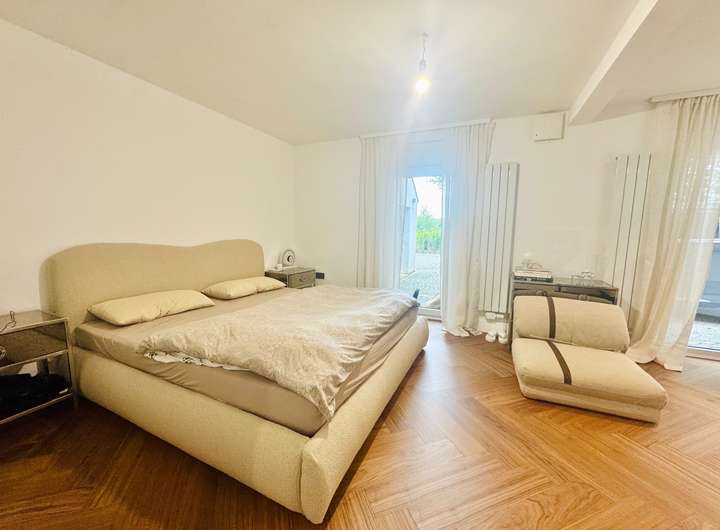 Souterrain mit Schlafzimmer, begehbarem Kleiderschrank und Zugang zum Innenhof