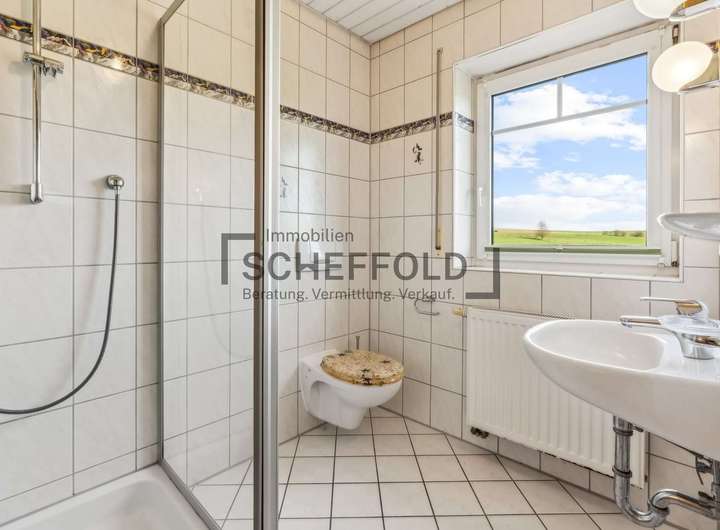 Zurück im Flur erwartet Sie das Obergeschoss, das nur darauf wartet, von Ihnen entdeckt zu werden. Hier finden Sie neben einem hellen Tageslichtbadezimmer mit Badewanne, Dusche, Waschbecken und Toilette insgesamt drei weitere Zimmer.