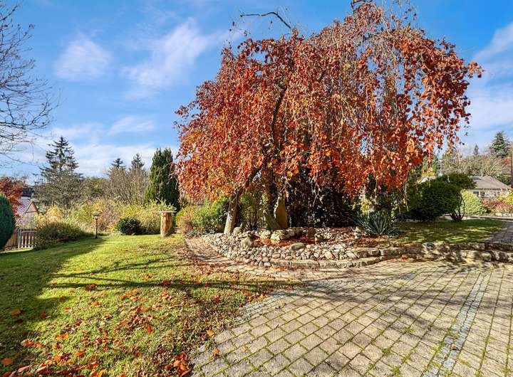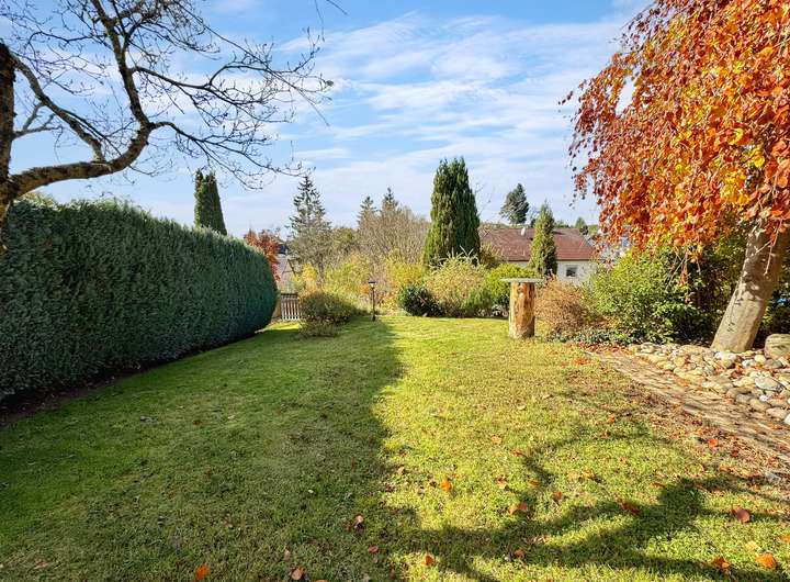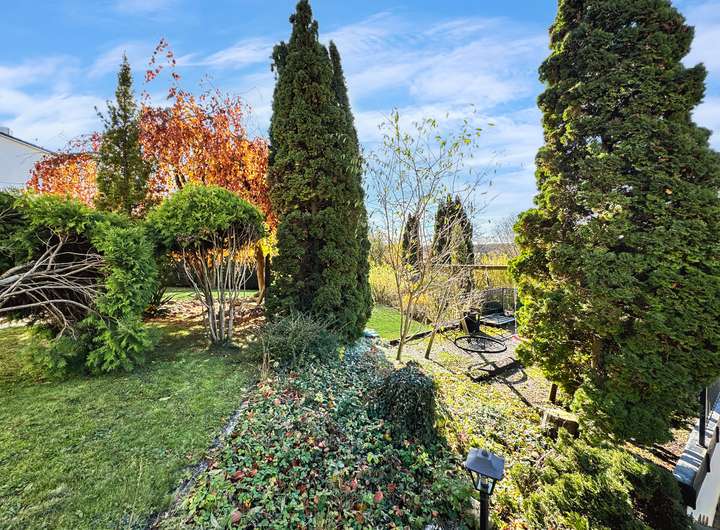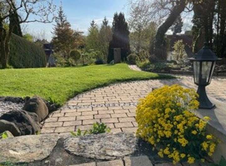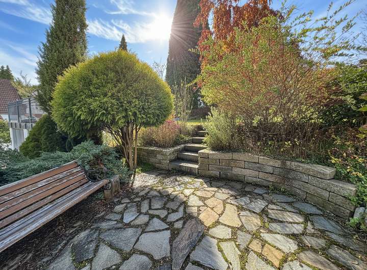 Das 1.050 qm große Grundstück bietet Ihnen einen liebevoll angelegten Graten, sonnige Terrassenbereiche , viel Platz zum Spielen mit einem kleinen Spielplatz- ein Paradies für Kinder, Gartenliebhaber und Ruheliebende gleichermaßen.