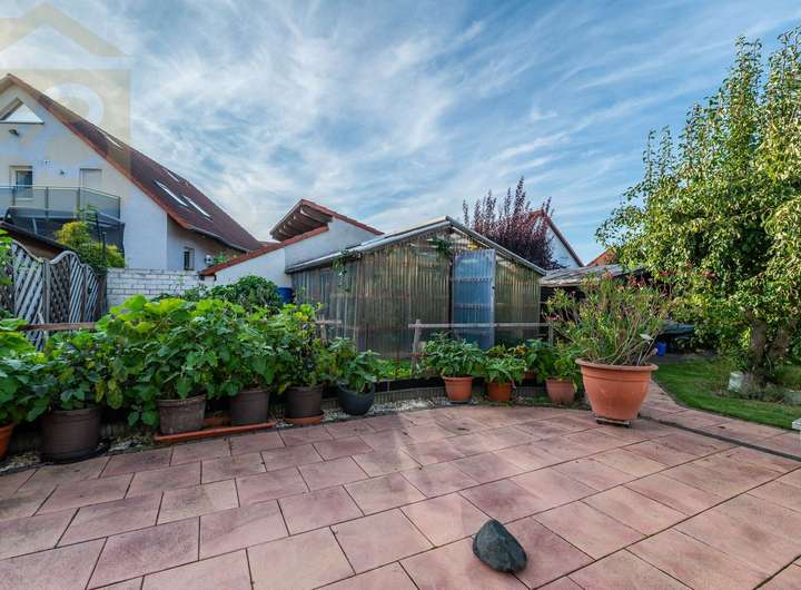 Im Erdgeschoss empfängt eine helle Diele die Bewohner und Gäste. Von hier aus gelangt man in die Küche, die mit einer Einbauküche ausgestattet ist. Ein Zwischenflur führt zu einem gemütlichen Schlafzimmer. Das großzügige Wohnzimmer bietet viel Raum für den Wohn- und Essbereich und öffnet sich zur sonnigen Terrasse mit Blick in den liebevoll angelegten Garten. Ein Duschbad komplettiert das Raumangebot auf dieser Ebene. Der Garten ist gepflegt, verfügt über ein Gewächshaus und einen praktischen Abstellraum – ideal für Hobbygärtner und alle, die das Leben im Grünen genießen möchten.