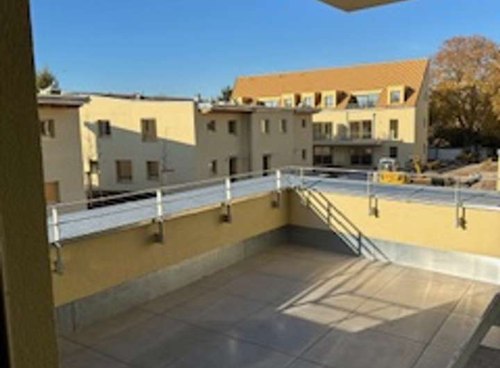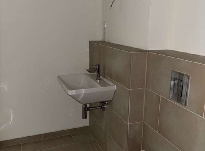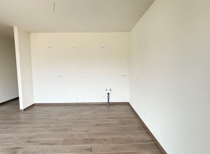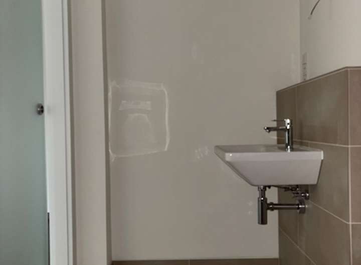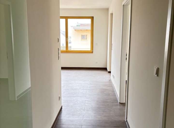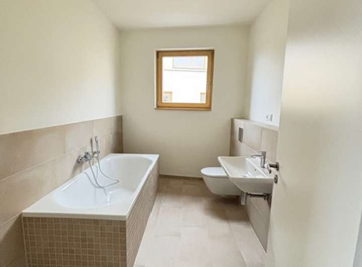 Hochwertigen Ausstattung der Wohnung mit großem Balkon, großzügigem Wohn- und Essbereich mit Anschlüssen für eine offenen Küche, Fußbodenheizung, Fliesenboden in Eichenparkett-Optik, Tageslicht-Bad mit Wanne und WC, ein zweites Bad mit bodengleicher Dusche und WC, HWR mit WM/Trockner-Anschluss, Fenster mit 3-fach Isolierverglasung und Belüftung sowie elektrischen Rollläden.