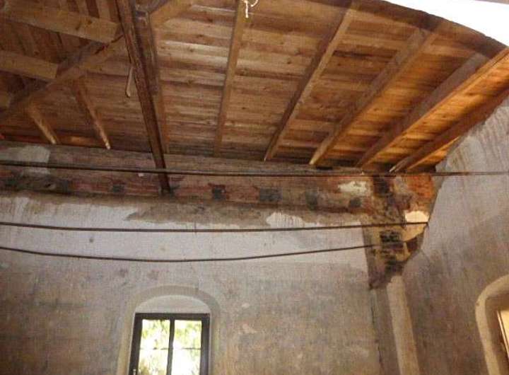 Die Immobilie ist mit Umfassungsmauern aus Stein-Ziegel Trennwänden ausgestattet. Im gesamten Gebäude wurden Decken aus Steingewölbe, Ziegelgewölbe und Holzbalkendecken eingebaut. Die Dachbedeckung besteht aus Naturschieferbedeckung und Metall-Dachrinnen, welche allerdings sanierungsbedürftig sind. Die Fußböden bestehen aus einfachen Bretterboden. Ein kleiner Garten ist im Hof des Gebäudes ebenfalls vorhanden und mit Büschen und Sträuchern bewachsen. Im Großen und Ganzen muss in diesem Gebäude sehr viel investiert und saniert werden, um es an den heutigen Standard anzupassen. In dem gesamten Mehrfamilienhaus müssen Maßnahmen zu einstürzenden Gebäudeteilen getroffen werden.