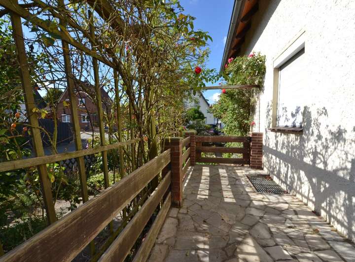 Der pflegeleicht angelegte Garten wird Ihrer gesamten Familie viel Freude bereiten; ob beim Toben auf der Rasenfläche oder Entspannen auf der Terrasse.