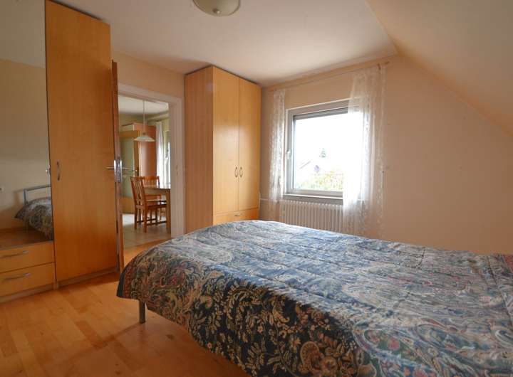 Vom Flur im Obergeschoss begehen Sie über eine feste Holztreppe das Dachgeschoss. In diesem ausgebauten Bereich sind zwei Zimmer vorhanden; weiterer Platz für Ihre Kinder oder Ihre Gäste.