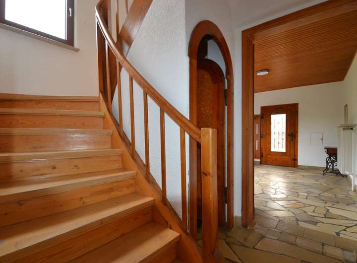 Über eine stilvolle Holztreppe erreichen Sie das Obergeschoss.