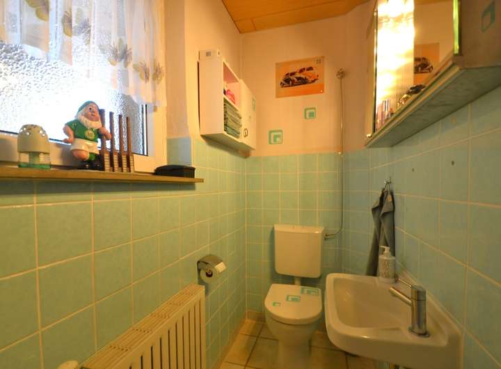 Der Keller ist über eine Treppe im Flur und über eine Außentreppe begehbar. Die Hausanschlüsse, die Heizung, der Waschkeller und viel Abstellfläche und ein weiteres WC sind hier vorhanden. Ein Raum, der beheizbar ist, lässt sich als Hobby- oder Arbeitszimmer einrichten.