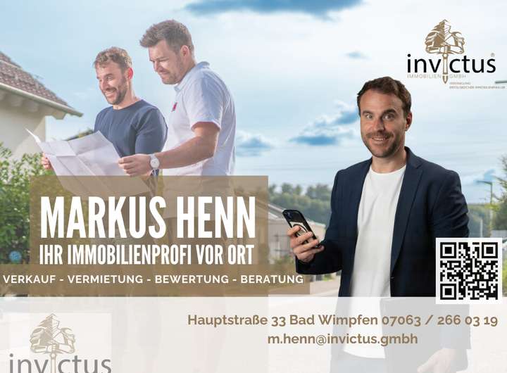 Sie erreichen uns unverbindlich unter folgender Telefonnummern 07063 266 03 19 oder m.henn@invictus.gmbh oder Sie finden mich nach Rücksprache in der Hauptstraße 33 74206 Bad Wimpfen oder Schulgasse 9 74072 Heilbronn