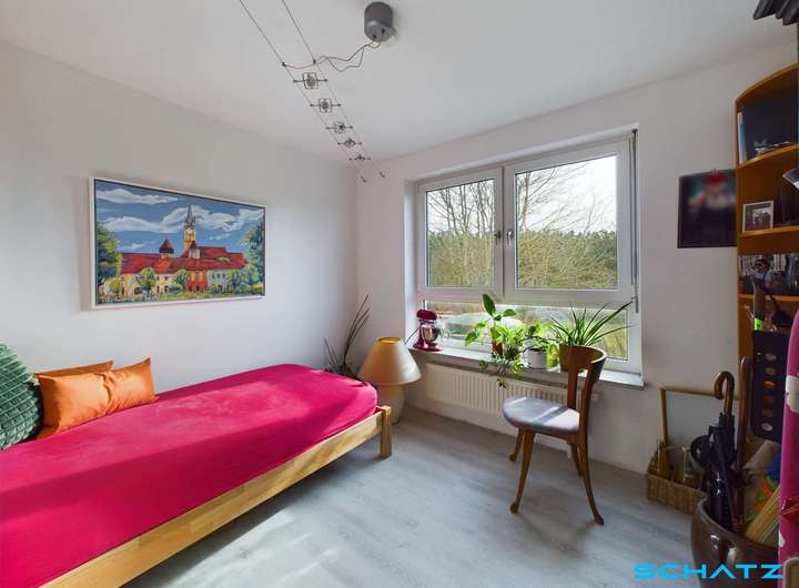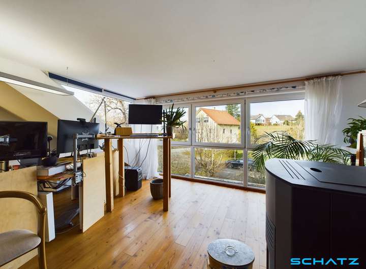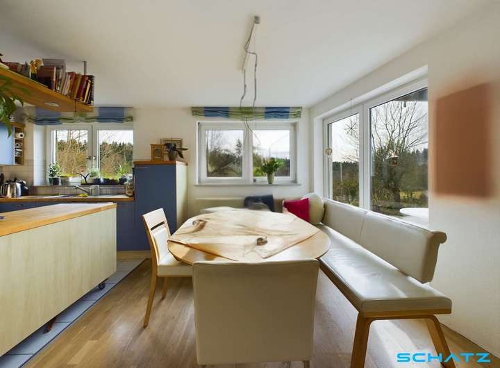 Die Nähe zur Natur und der Blick auf die umliegenden Wälder und Wiesen machen dieses Zuhause zu einer echten Oase. Hier können Sie nach einem anstrengenden Tag vollkommen abschalten, auf der Terrasse oder dem Balkon die Ruhe genießen und die frische Luft der Umgebung atmen.