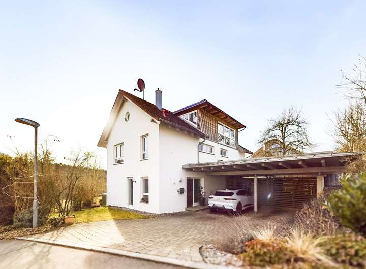 Dieses im Jahr 2000 massiv erbaute Architektenhaus vereint zeitlose Architektur, großzügigen Wohnkomfort und eine traumhafte Lage. Im Jahr 2012 wurde das Haus durch eine stilvolle Dachaufstockung erweitert – entstanden ist ein Zuhause mit ca. 229 m² Wohnfläche, verteilt auf drei Ebenen, das einer großen Familie reichlich Platz und eine durchdachte Raumaufteilung bietet.