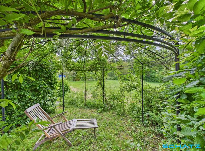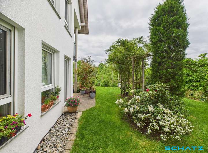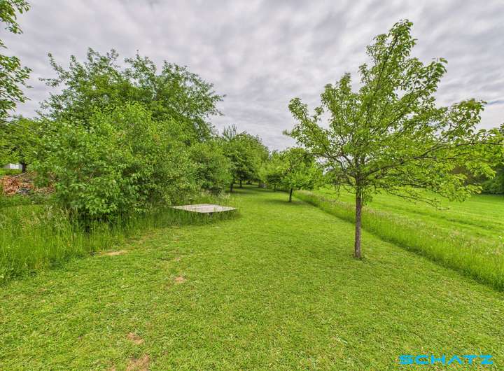Das ca. 1.620 m² große Grundstück liegt in bevorzugter Randlage und schenkt absolute Privatsphäre. Von Terrasse und Balkon genießen Sie einen unverbaubaren Blick in die Natur. Der liebevoll angelegte Garten bietet sowohl weitläufige, ebene Flächen für Kinder und Freizeitaktivitäten als auch Rückzugsorte: Ein Holz-Sonnendeck am Grundstücksende lädt zum Entspannen ein. Für die optimale Pflege sorgen eine Bewässerungsanlage und drei Wasserspeicher.