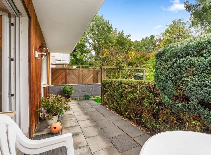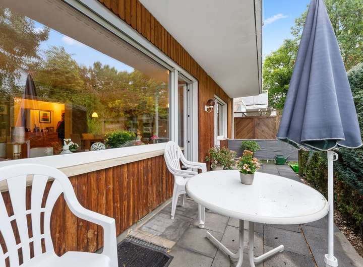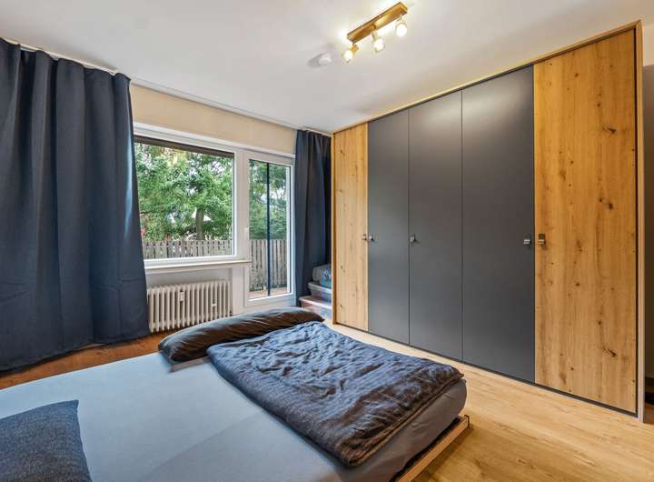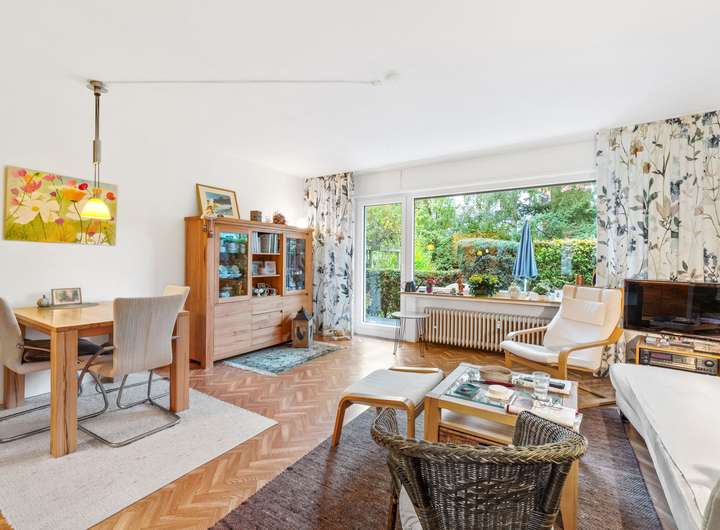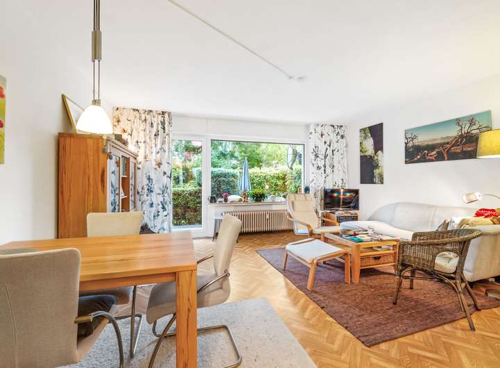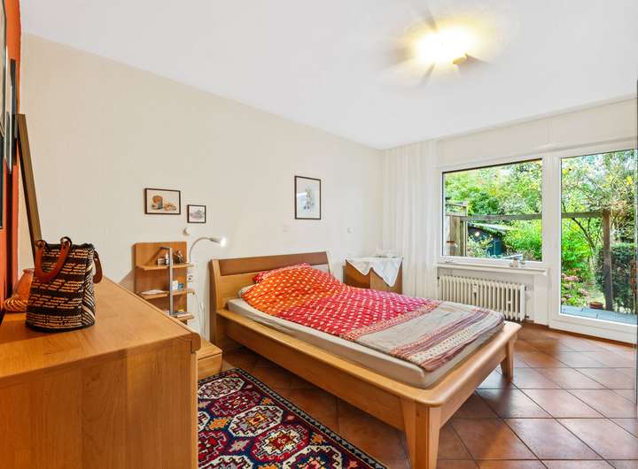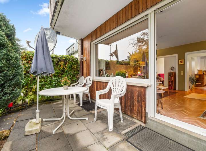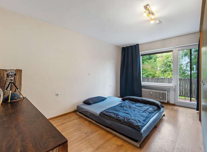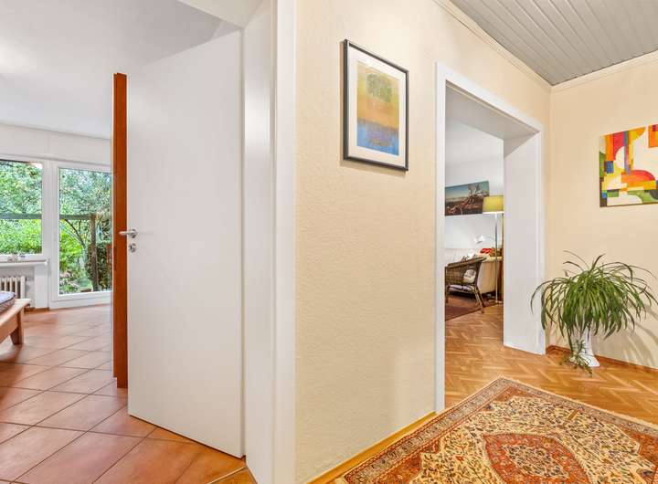 Die Erdgeschosswohnung umfasst drei Zimmer und erstreckt sich über eine Wohnfläche von ca. 66 m². Sie werden von einer hellen und großzügigen Diele empfangen, von der aus nahezu alle Räume bequem erreichbar sind. Direkt auf der rechten Seite befindet sich das Badezimmer mit einem Fenster, einem Waschbecken, einem WC und einer Dusche. Es ist klassisch hell gestaltet und gepflegt. Geradeaus führt der Flur weiter zur Küche, die auf der rechten Seite liegt. Gegenüber der Küche befindet sich das Wohnzimmer, das durch seine Größe und den Zugang zur Terrasse besonders überzeugt. Die Terrasse bietet Platz für Sitzgelegenheiten und Pflanzen und führt direkt in den gepflegten Garten, der gemeinschaftlich genutzt wird. Vom Wohnzimmer aus gelangt man in ein weiteres Zimmer, das ursprünglich als Esszimmer geplant war, sich jedoch ebenso gut als Kinderzimmer, Gästezimmer oder Arbeitszimmer eignet. Zurück in der Diele befindet sich gegenüber des Badezimmers das großzügige Schlafzimmer. Hier findet man problemlos Platz für ein großes Bett und einen geräumigen Kleiderschrank. Auch von diesem Raum aus besteht ein direkter Zugang zur Terrasse. Die Wohnung ist seit Februar 2016 vermietet, die monatliche Kaltmiete beträgt 530,00 Euro, die Nebenkosten belaufen sich auf 240,00 Euro.