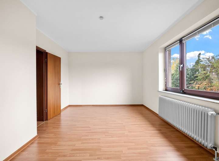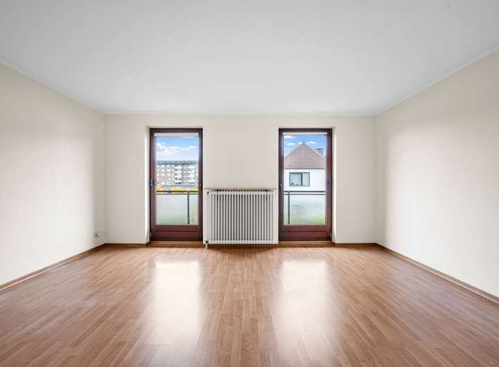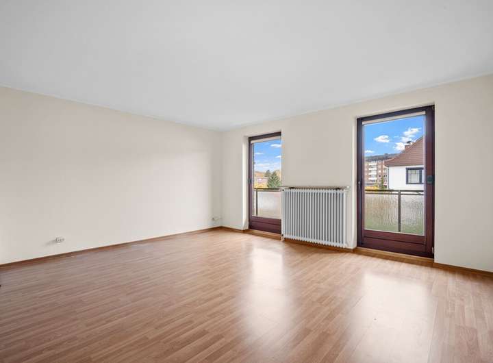 Heute bieten zwei Schlafzimmer vielfältige Nutzungsmöglichkeiten: Ein Zimmer verfügt über zwei bodentiefe Fenster und bietet Zugang zu einem überdachten Balkon (ca. 5 m²), auf dem Sie die Abendsonne in vollen Zügen genießen können. Das zweite Zimmer ist ebenfalls hell und freundlich gestaltet.
