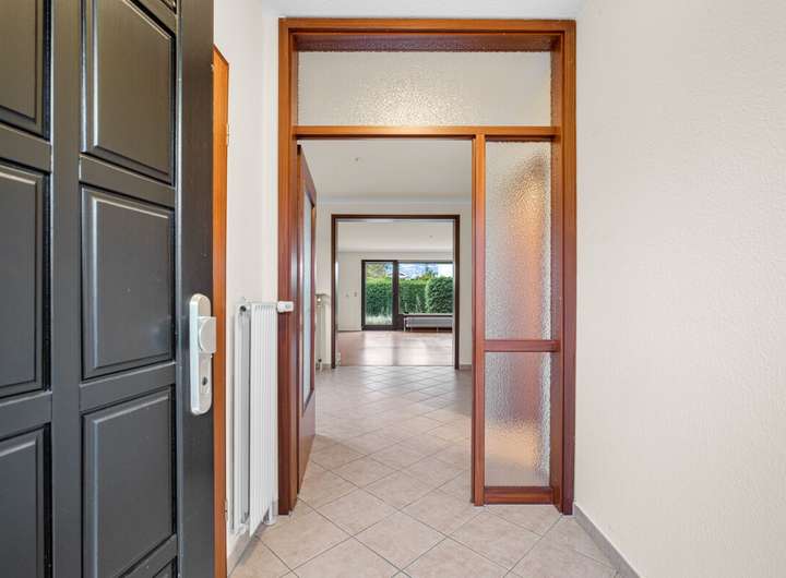 Schon beim Betreten des Hauses fällt der gepflegte Gesamteindruck auf. Über einen Windfang gelangen Sie in die einladende Diele mit angrenzendem Essbereich. Der gesamte Eingangsbereich sowie die Bäder sind mit hellen Terrakottafliesen gestaltet, während die Wohnräume mit Laminat in ansprechender Holzoptik ausgestattet sind. Im Erdgeschoss sorgen Außenjalousien und Einbruchschutz an den Fenstern für zusätzlichen Komfort und Sicherheit.