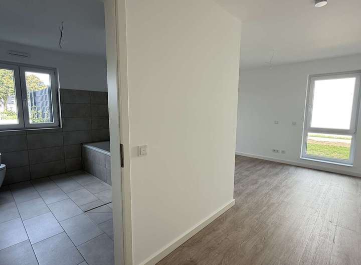 Neubau mit Herz: 3-Zimmer-Wohnung, Balkon mit Grünblick & Schlafzimmer mit Bad en suite