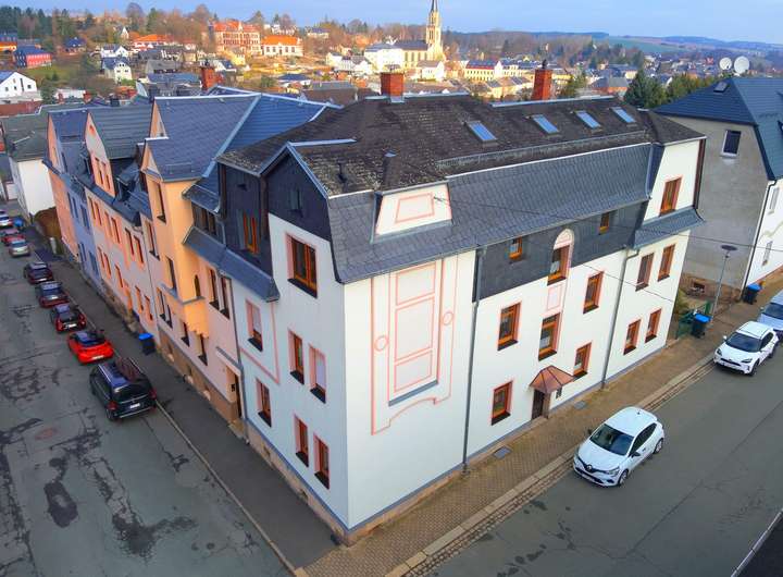 Der Marktplatz, alle Versorgungseinrichtungen sowie öffentliche Einrichtungen, Ärzte, Schulen und Kindergärten sind fußläufig erreichbar. Unweit im Ortsteil Plohn liegt der bekannte Märchen- und Freizeitpark Plohn.