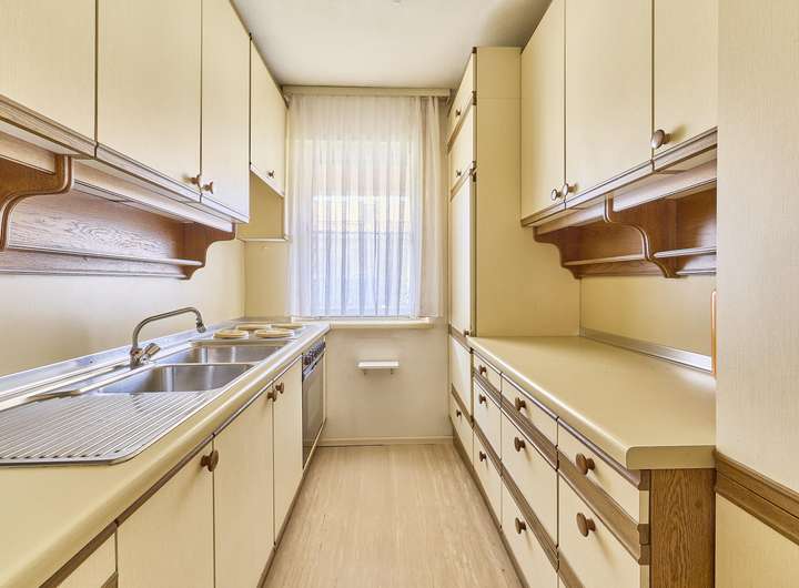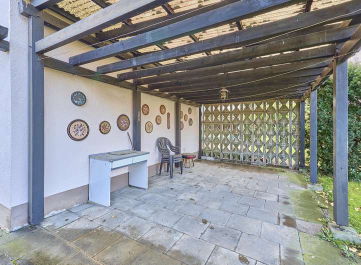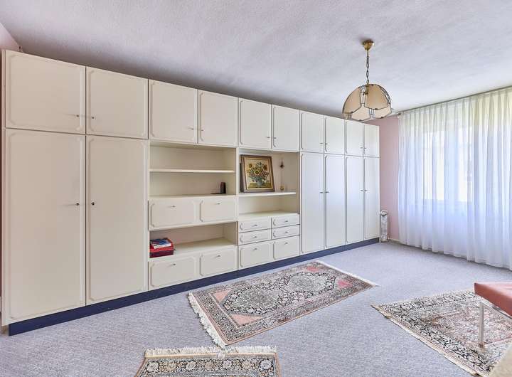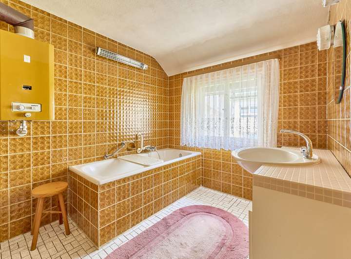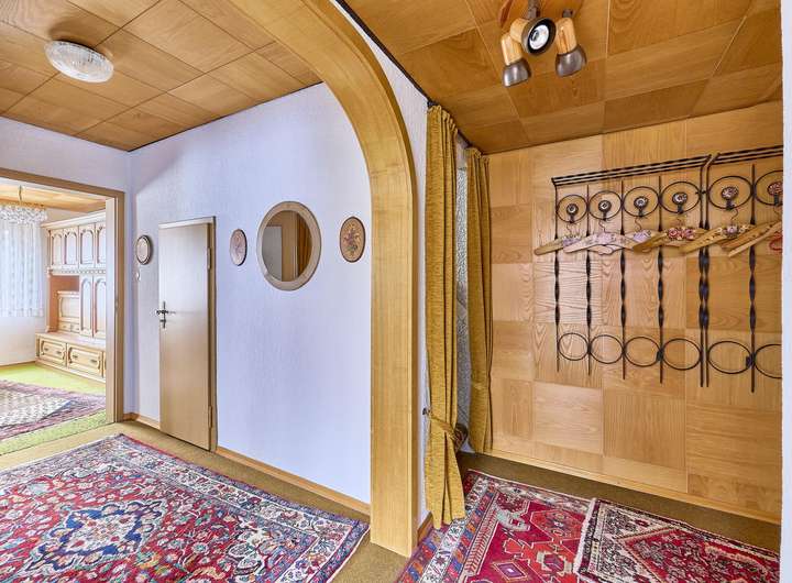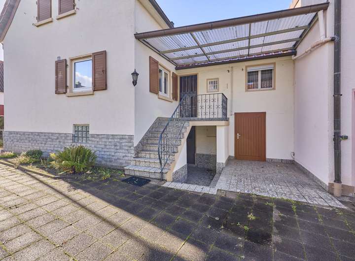 Das hintere Haus wurde 1963 erbaut und bietet rund 113 m² Wohnfläche. Im Erdgeschoss befinden sich ein Zimmer, das sich gut als Büro oder Gästezimmer eignet, zwei kleine Abstellräume sowie ein Schlafzimmer. Im Obergeschoss liegen eine Küche, ein Badezimmer mit Badewanne, ein großzügiges Wohnzimmer mit Zugang zum Balkon und ein weiteres Schlafzimmer, das ebenfalls über einen Balkonzugang verfügt.