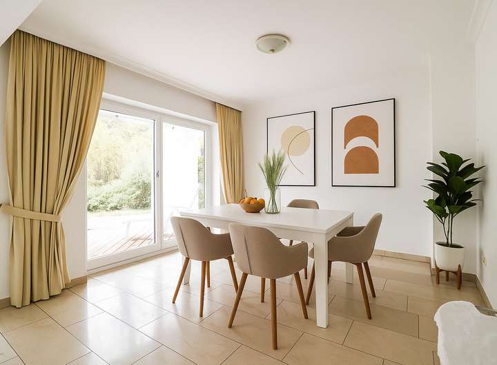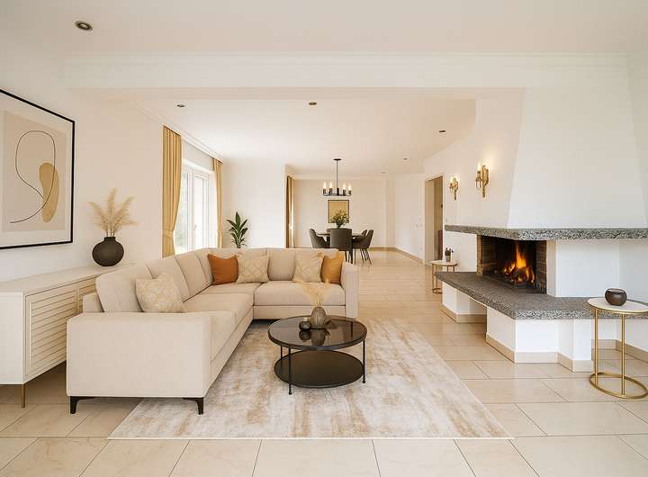 Mit 292 m² Wohnfläche bietet das Haus außergewöhnlich viel Raum, eine durchdachte Architektur und eine Atmosphäre, die sofort ein Gefühl von Wohlbehagen vermittelt. Sechs großzügige Zimmer, darunter vier Schlafzimmer und drei Badezimmer, schaffen ein Ambiente, das Familie, Arbeit und Erholung perfekt miteinander verbindet.