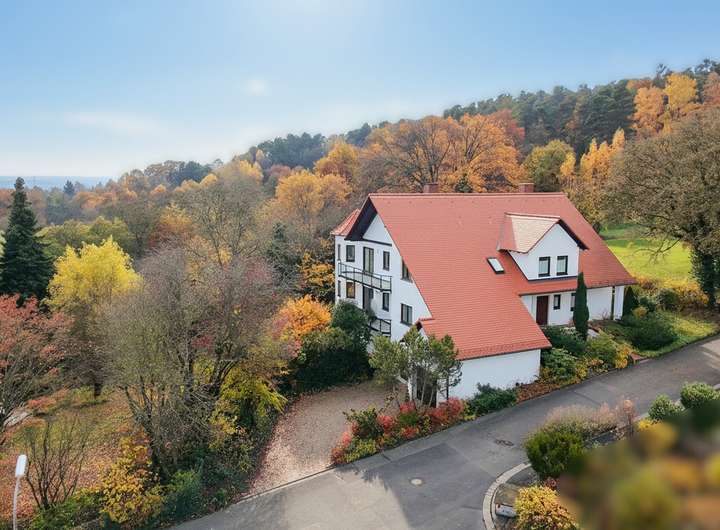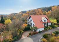 Dieses beeindruckende Anwesen präsentiert sich in einer idyllischen Wohnstraße mit begrenztem Anliegerverkehr auf einem weitläufigen Grundstück von rund 1.338 m² – ein echtes Unikat für alle, die das Besondere und die Nähe zur Natur schätzen.