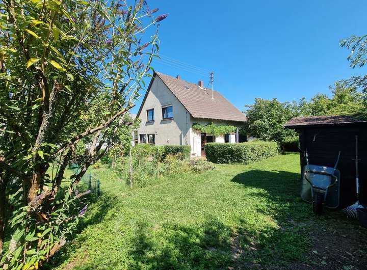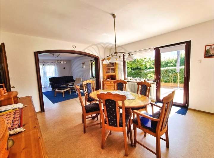 Die Immobilie wurde 1962 in Massivbauweise errichtet und ist komplett unterkellert. Dieses Objekt befindet sich in einem gepflegten Zustand und verfügt über eine innenliegende Garage. Das Dach des Hauses ist ein Pfettendach mit Tonpfanneneindeckung. Die Fassade ist verputzt und gestrichen. Das Haus verfügt über ca. 195 m² Wohnfläche, welche sich wie folgt aufteilt: Flurbereich, Wohnküche ( renoviert 2015), Essbereich, Wohnbereich mit Ausgang auf Terrasse und in den Garten, Bad (2015) und Schlafzimmer. Über eine Betontreppe, welche mit Teppich belegt wurde, gelangt man in das Obergeschoss. Dieses ist aufgeteilt in Flur, vier Zimmer, Balkon und Bad (2010). Im Keller befindet sich ein Technikraum, Hobbyraum und diverse andere Räume. Das Grundstück ist voll erschlossen und die Erschließung wurde bereits komplett bezahlt.