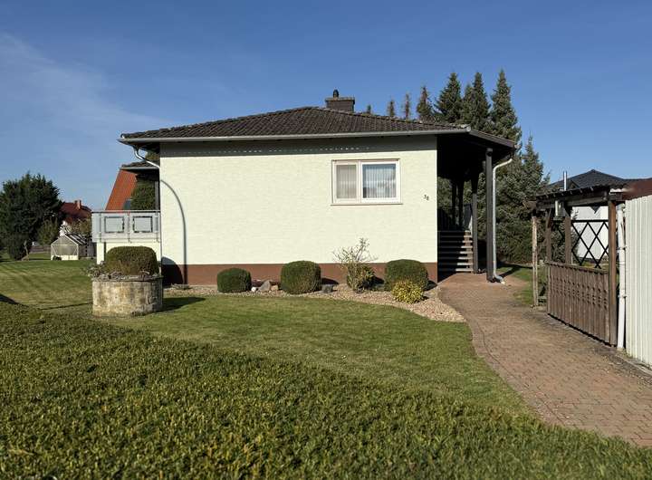Dieser sehr gepflegte Winkel-Bungalow mit großem Balkon befindet sich in ruhiger Lage von Eschwege-Niederhone, er ist voll unterkellert und wurde im Jahr 1980 erbaut.