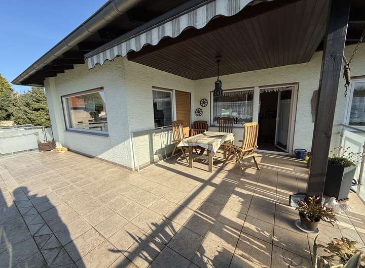 - Großzügiges Wohn-und Esszimmer mit Zugang zu einem teilweise überdachten Balkon
