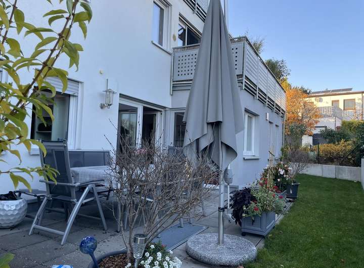 Sehr attraktiv ist die große Gartenterrasse mit kleinem schön angelegten Gartenanteil.