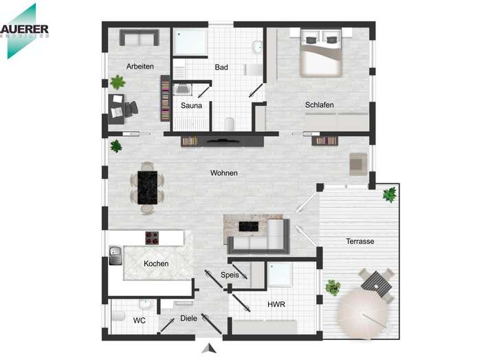 Durch die zahlreichen Fenster und bodentiefen Fensterfronten mit 3-fach Isolierverglasung ist diese Wohnung sehr hell und lichtdurchflutet..