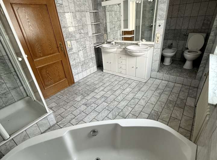 Die Wohnung bietet insgesamt eine großzügige Gemeinschaftsfläche mit einer riesigen Terrasse, zwei voll ausgestatteten Einbauküchen sowie drei Bädern, was das Zusammenleben deutlich angenehmer gestaltet. Ein Waschautomat steht zur entgeltlichen Mitnutzung bereit. Darüber hinaus besteht die Möglichkeit, bei Bedarf einen abschließbaren Einzelgaragenstellplatz (50 €/Monat) oder einen Kellerraum (30 €/Monat) separat anzumieten.