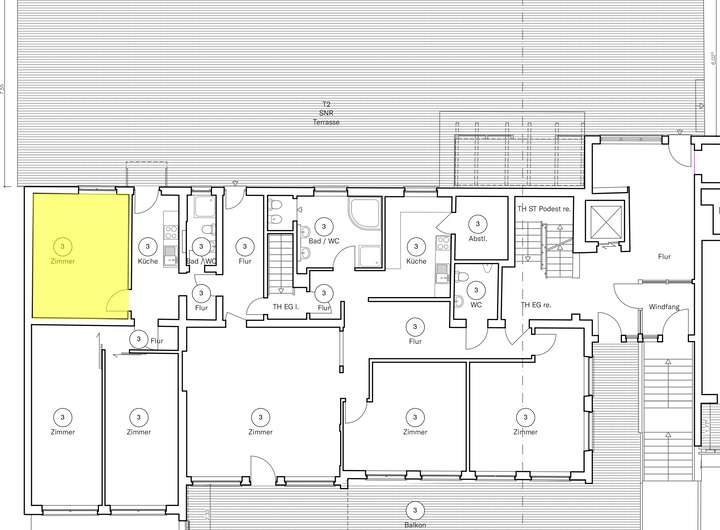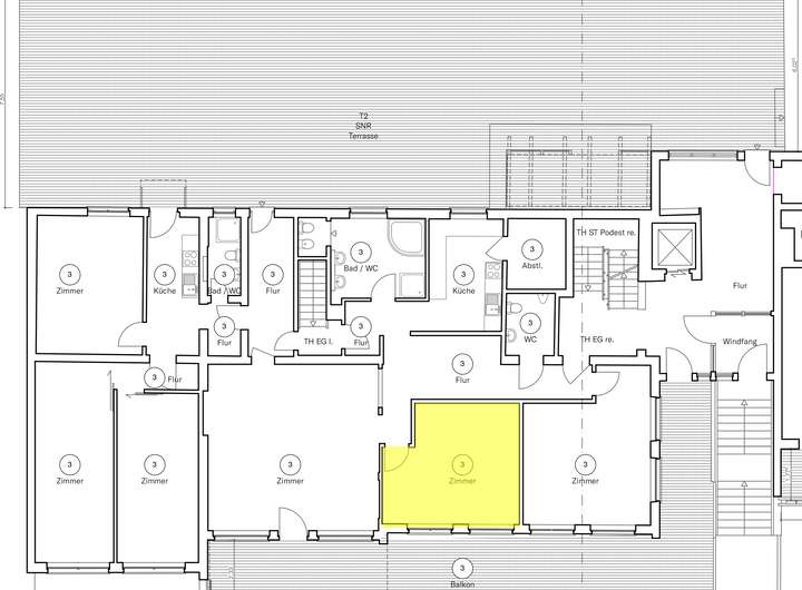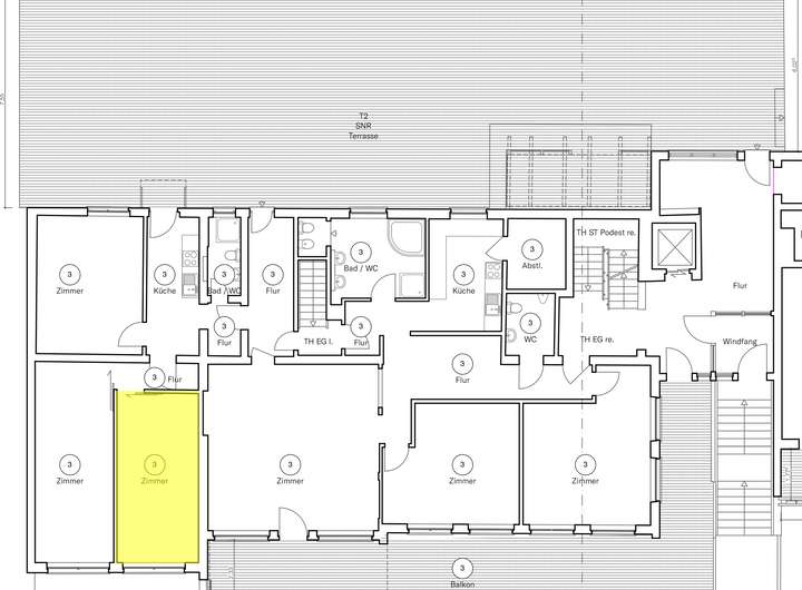 Zimmer 3: ca. 35 m² – 670,00 €/Monat – Kaution: 2.010,00 €