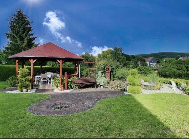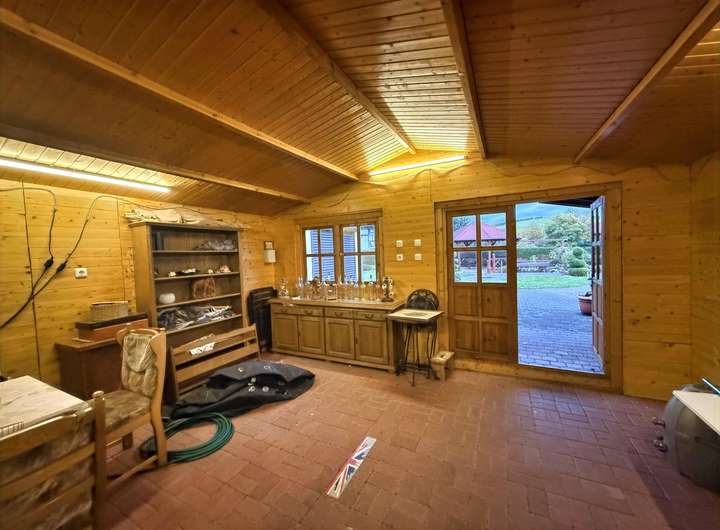 Das weitläufige Grundstück überzeugt mit einem liebevoll gestalteten Garten, einem charmanten Gartenhaus und einem idyllischen Teich – ein perfekter Rückzugsort für Naturliebhaber und Ruhesuchende.