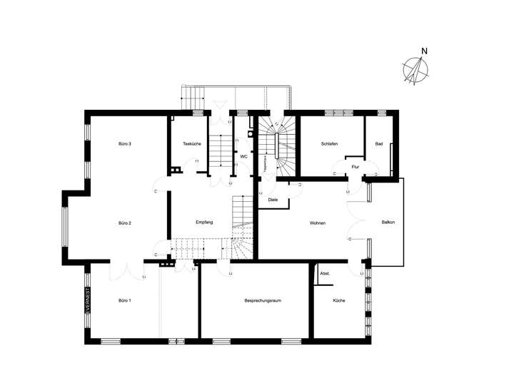Die Gebäudestruktur erlaubt eine flexible Neuaufteilung: Durch einfache Grundrissanpassungen lassen sich Einheiten zusammenlegen oder trennen – ideal für eine individuelle Nutzung als großzügige Wohnvilla, repräsentatives Büro oder extravaganter Showroom.
