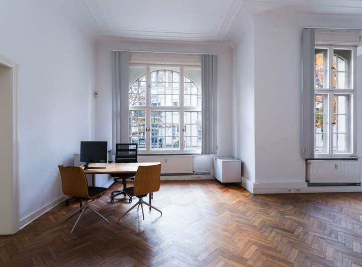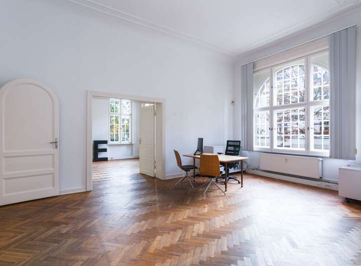 Bisher als exklusives Küchenstudio genutzt, beeindruckt sie mit großzügigen Deckenhöhen, teils holzvertäfelten Decken und weitläufigen Grundrissen, die klassische Eleganz mit zeitloser Präsenz verbinden.