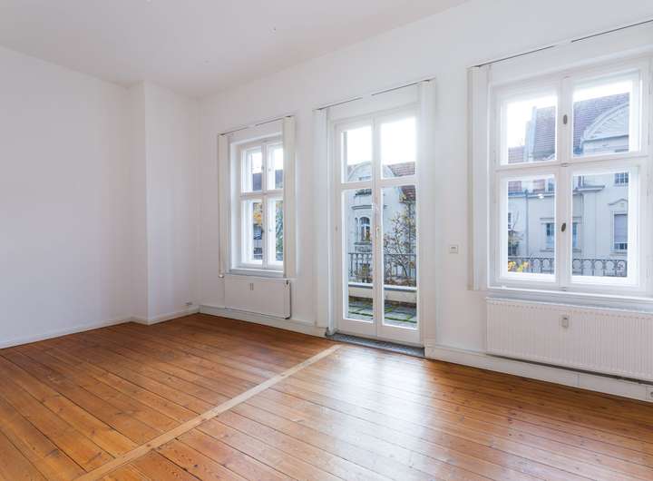 Die größere Altbaueinheit – über einen separaten, herrschaftlichen Eingang erschlossen – ist leerstehend und bietet Raum für die Visionen des neuen Eigentümers.