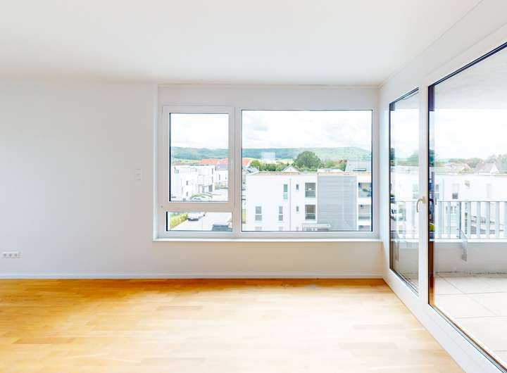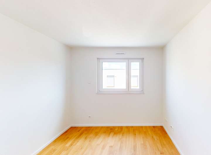 Diese 3-Zimmer teilt sich durch den Zuschnitt in einen Schlafbereich und Wohnbreich auf, welche durch einen geräumigen Flur verbunden werden. Das große Schlafzimmer verfügt über viel Platz und dem Zugang zu einem kleinen Balkon. Das angrenzende Badezimmer ist mit einem Tageslichtfenster, einer Wanne und einer modernen Dusche inkl. Glasspritzschutzwänden ausgestattet. Ergänzt wird dieses um ein separetes innenliegendes Gäste-WC. Angrenzend befindet sich ein zweites Schlafzimmer, welches verschiedene Nutzungen ermöglicht. Der Wohnbereich präsentiert sich mit Vorinstallationen für eine Einbauküche und einer großen Fensterfornt, wodurch für viel Helligkeit gesorgt ist. Abgerundet wird das Wohnkonzept dieser 3-Zimmer-Wohnung durch einen Zugang auf eine nach Südwesten ausgerichtete Loggia. Ein eigener Waschmaschinenanschluss im gemeinsamen Waschraum sowie ein separates Kellerabteil befinden sich im Untergeschoss.